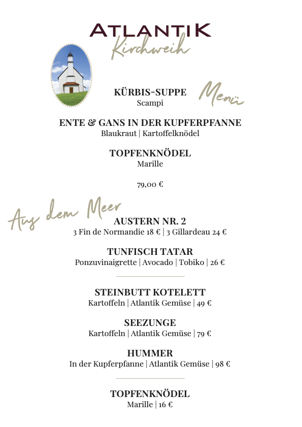 Wir laden Sie herzlich ein, am 19.10.2024 ab 12 Uhr die Kirchweih mit uns im Atlantik Fisch zu zelebrieren!